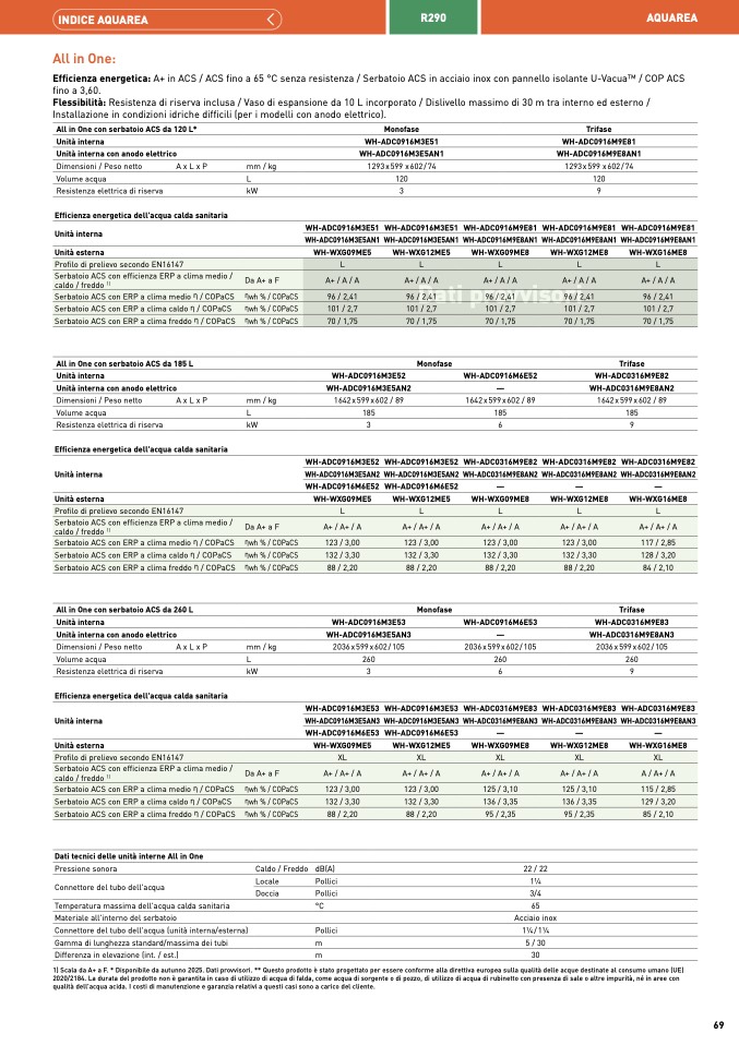 Efficienza energetica: A+ in ACS / ACS fino a 65 °C senza resistenza / Serbatoio ACS in acciaio inox con pannello isolante U-Vacua™ / COP AC