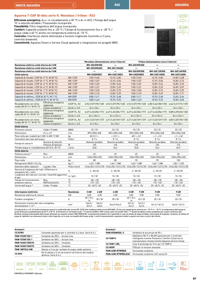 1) Scala da A+++ a D. 2) Livello di potenza sonora in conformità alla norma EN 12102 alle condizioni della norma EN14825. 3) Con una temperatura esterna tra i -10 °C e i -15 °C, la temperatura dell'acqua i