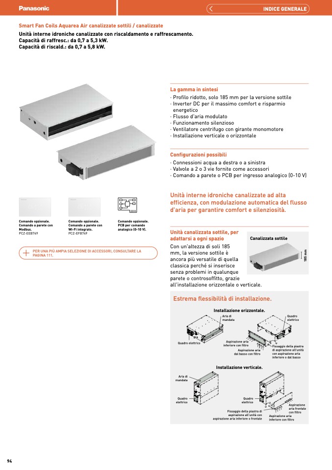 Smart Fan Coils Aquarea Air canalizzate sottili / canalizzat