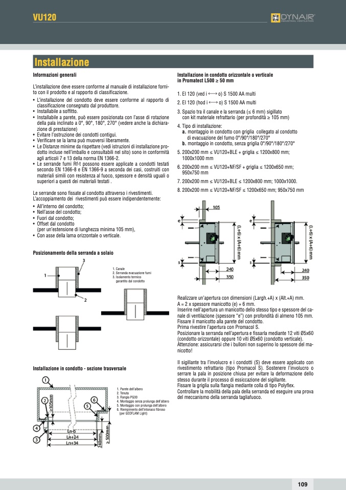 • Le serrande fumi Rf-t possono essere applicate a condotti testati