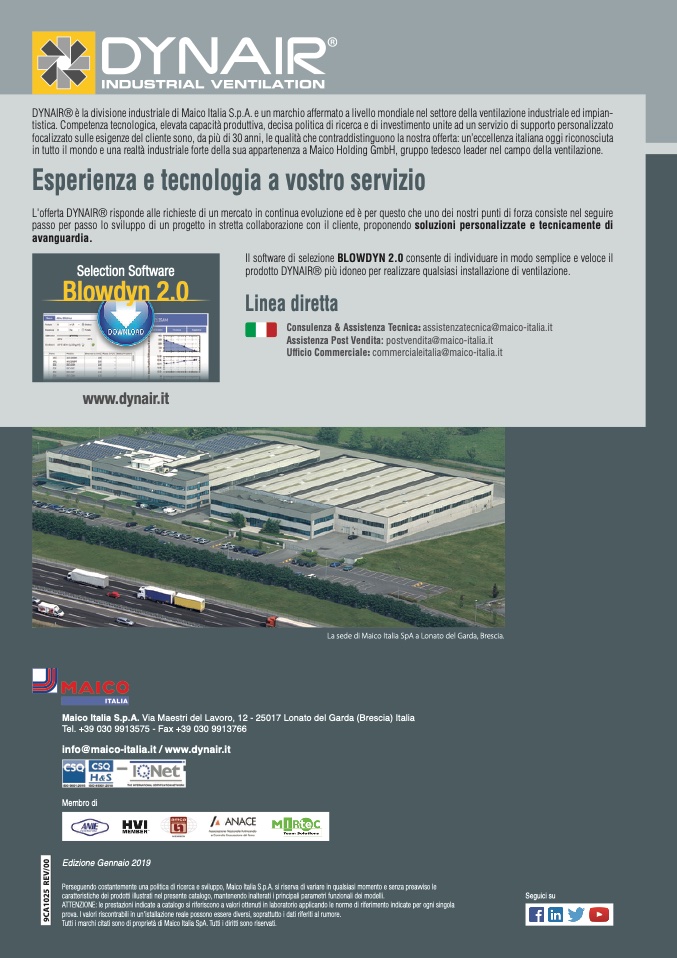 DYNAIR® è la divisione industriale di Maico Italia S.p.A. e un marchio affermato a livello mondiale nel settore della ventilazione industriale ed impian-