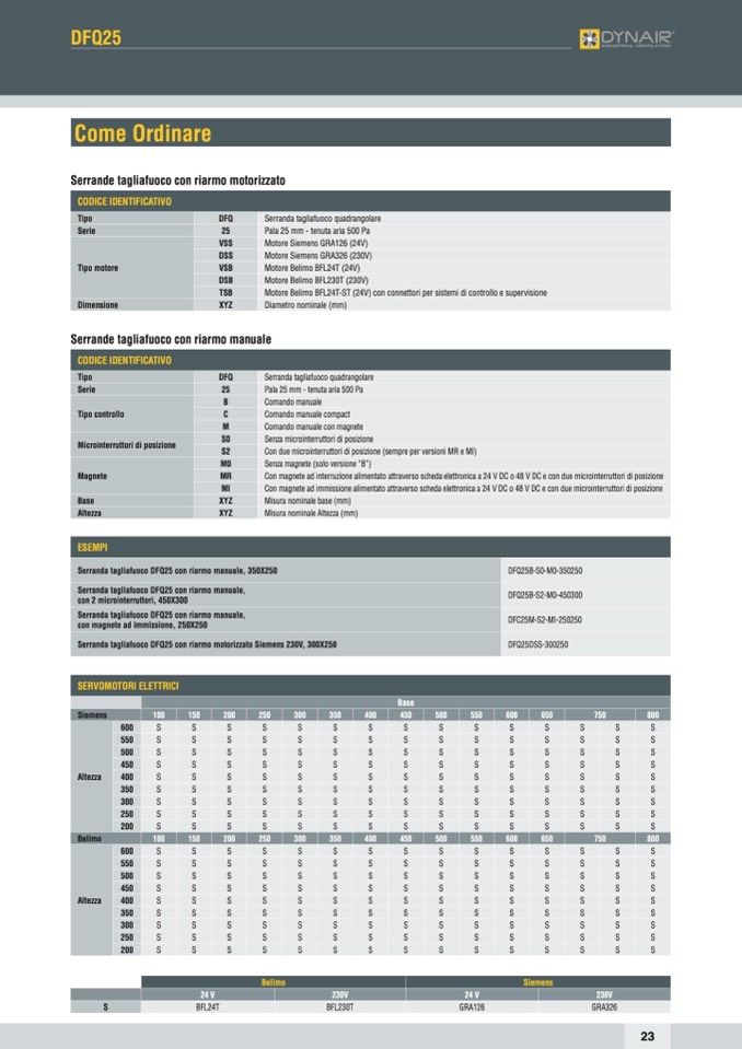 Serranda tagliafuoco DFQ25 con riarmo motorizzato Siemens 230V, 300X250