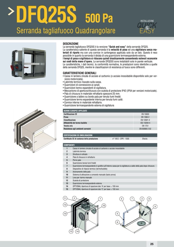 La serranda tagliafuoco DFQ25S è la versione “Quick and easy” della serranda DFQ25.