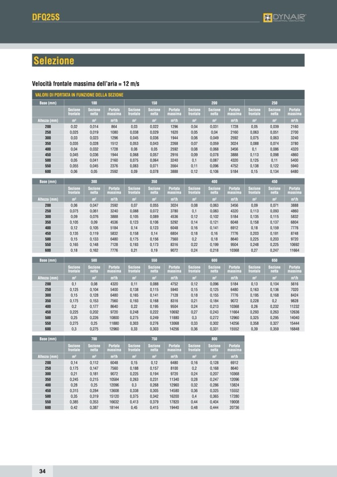 VALORI DI PORTATA IN FUNZIONE DELLA SEZIONE