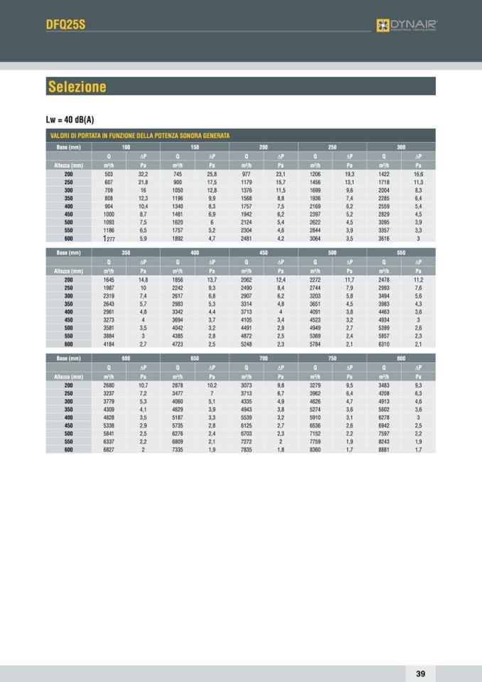VALORI DI PORTATA IN FUNZIONE DELLA POTENZA SONORA GENERATA