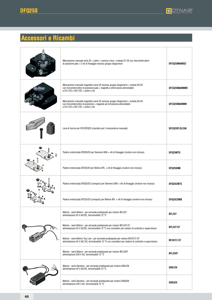 di posizione pala + 2 viti di fissaggio escluso gruppo disgiuntore