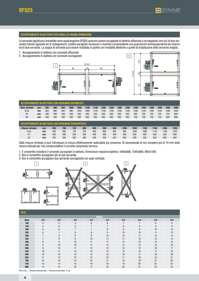 Le serrande tagliafuoco brevettate serie quadrangolare DFQ25 possono essere accoppiate in batteria af
