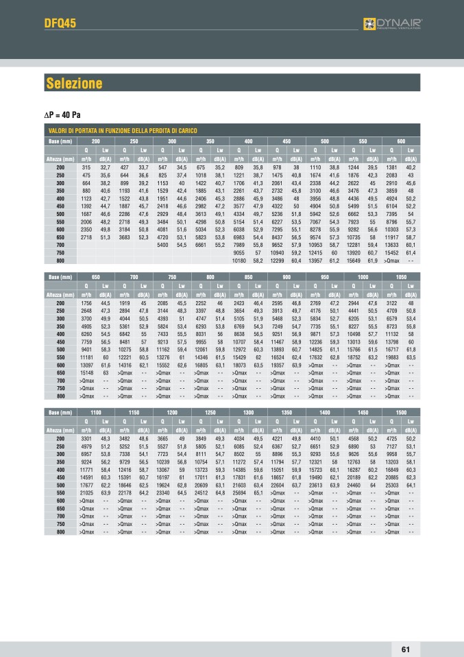 m3/h dB(A) m3/h dB(A) m3/h dB(A) m3/h dB(A) m3/h