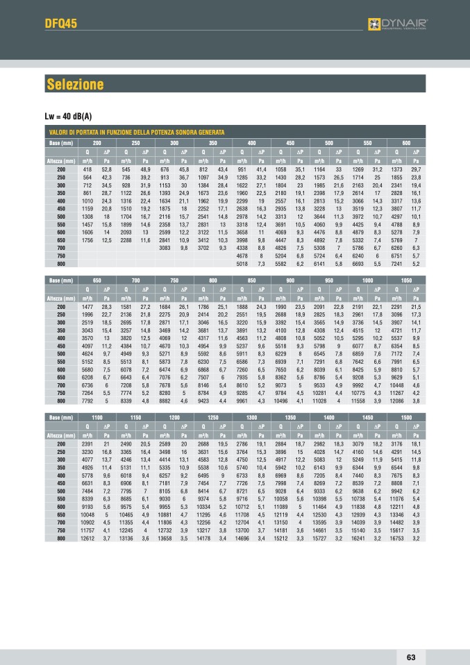 VALORI DI PORTATA IN FUNZIONE DELLA POTENZA SONORA GENERATA