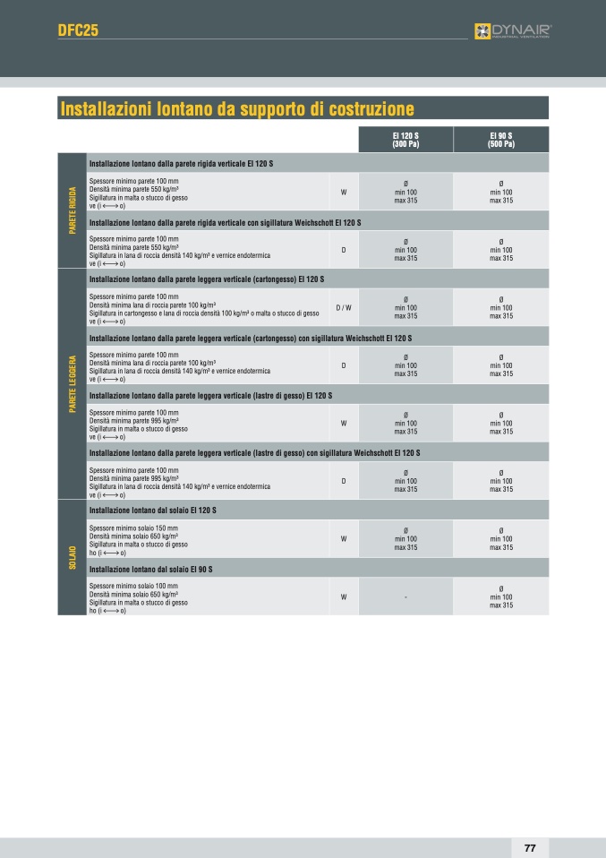 Installazione lontano dalla parete rigida verticale EI 120 S