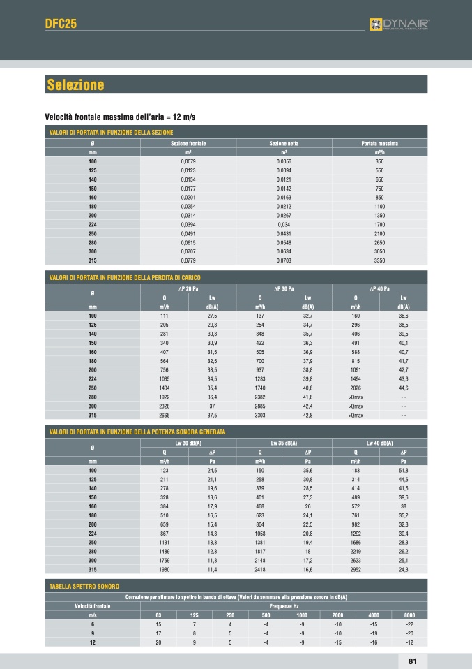 VALORI DI PORTATA IN FUNZIONE DELLA POTENZA SONORA GENERATA