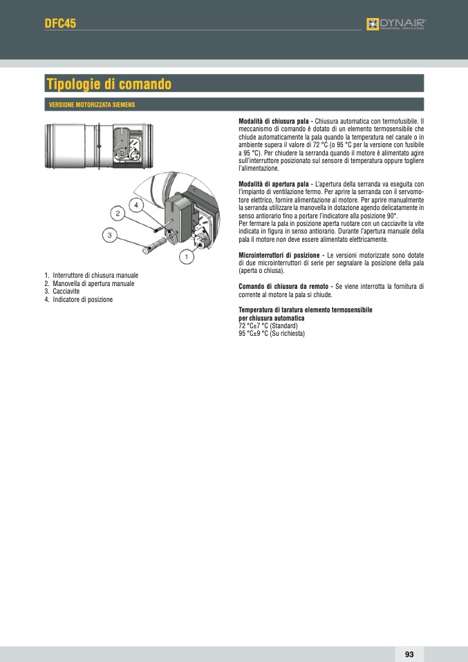 a 95 °C). Per chiudere la serranda quando il motore è alimentato agire