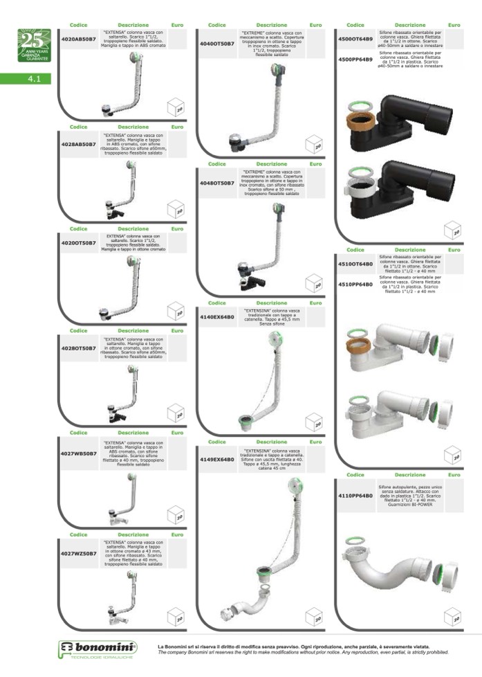 La Bonomini srl si riserva il diritto di modifica senza preavviso. Ogni riproduzione, anche parziale, è severamente vietata.