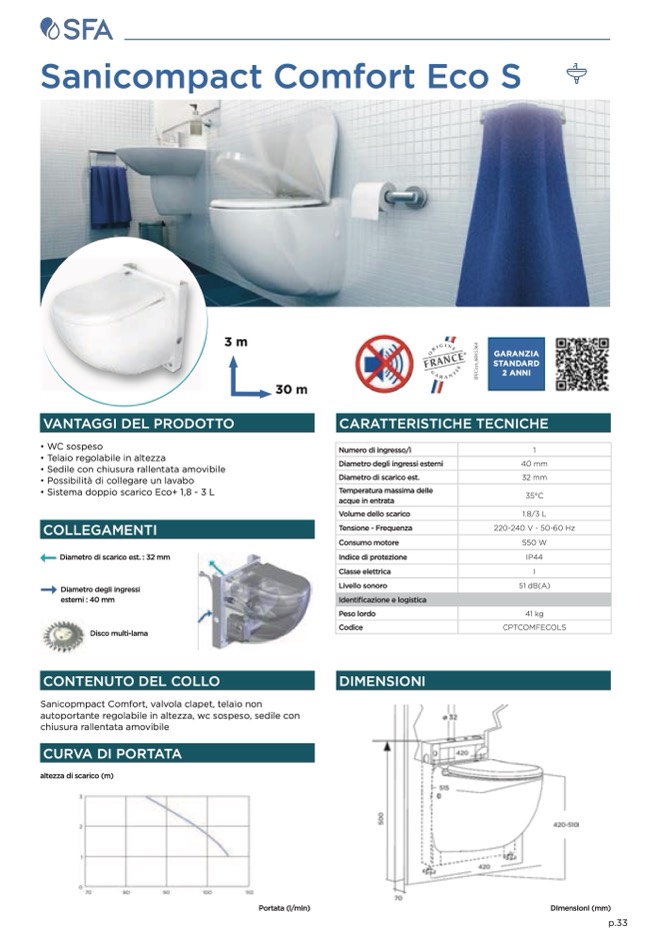 Sanicopmpact Comfort, valvola clapet, telaio non
