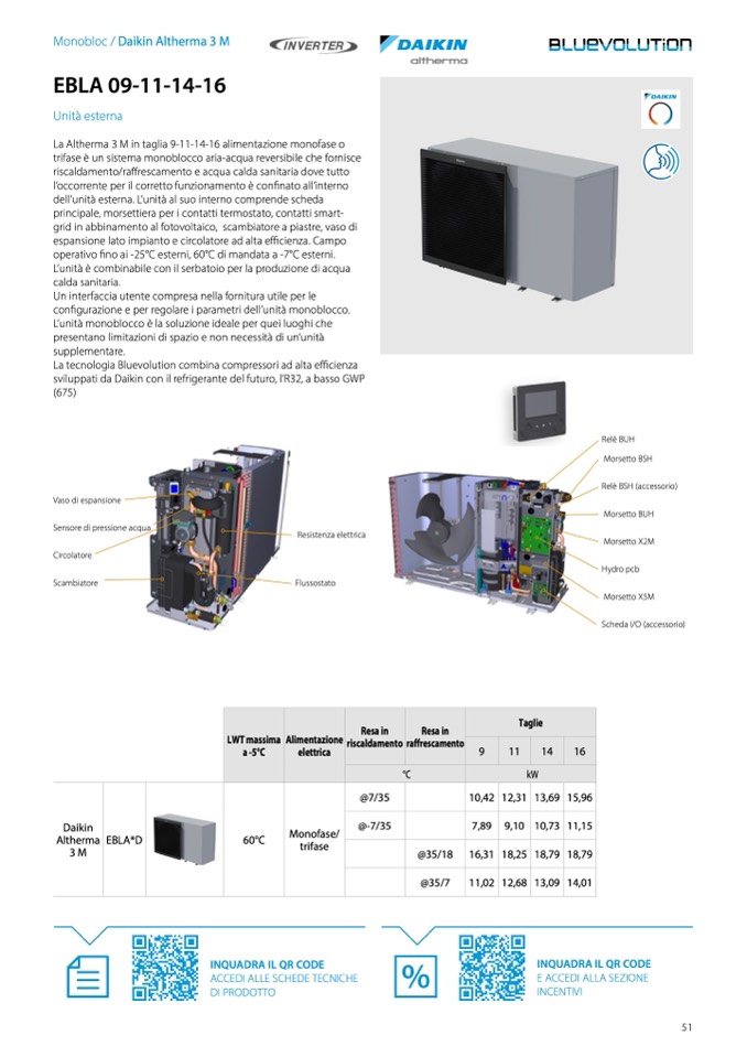 La Altherma 3 M in taglia 9-11-14-16 alimentazione monofase o