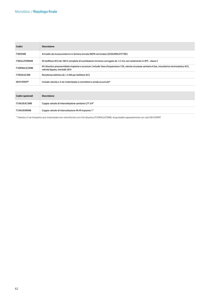 * Valvola a 3 vie (impianto-acs) motorizzata non viene fornito con il kit idraulico (IT.IDRAULICOMB). Acquistabile separatamente con cod. EKHY3PART.