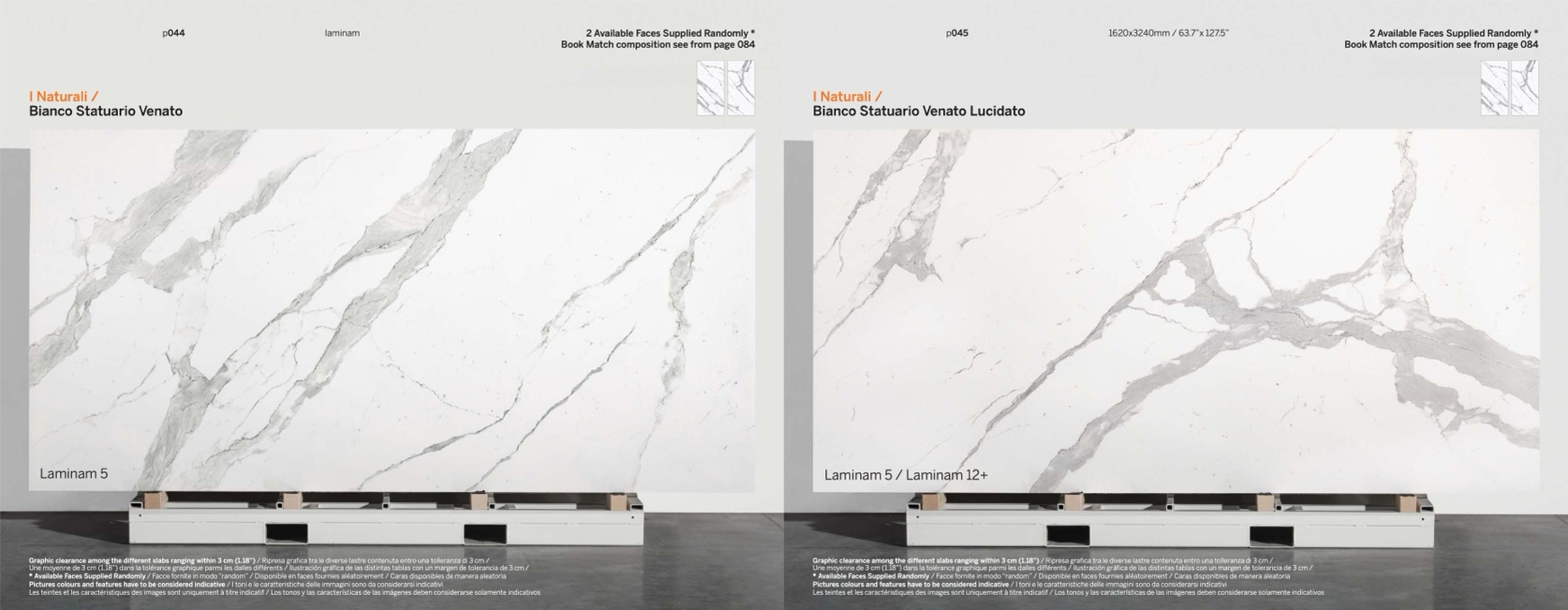 Graphic clearance among the different slabs ranging within 3 cm (1.18”) / Ripresa grafica tra le diverse lastre contenuta entro una tolleranza di 3 cm /