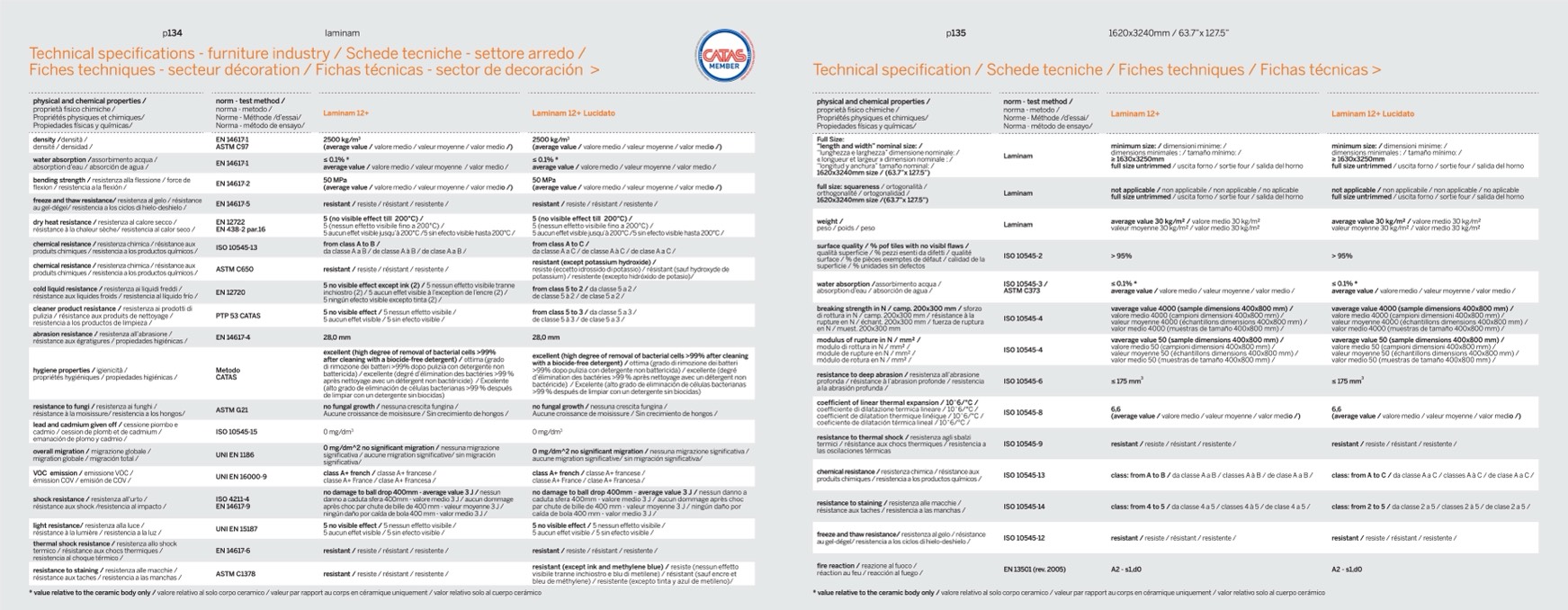 * value relative to the ceramic body only / valore relativo al solo corpo ceramico / valeur par rapport au corps en céramique uniquement / valor relativo solo al cuerpo cerámico
