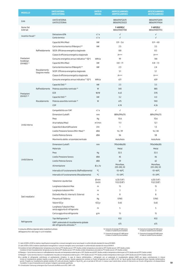 9) I climatizzatori Samsung contengono Gas Fluorurati ad effetto serra R32. GWP = 675