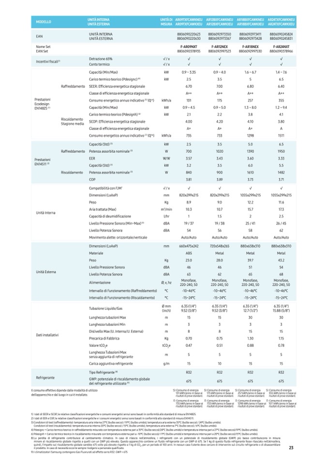 9) I climatizzatori Samsung contengono Gas Fluorurati ad effetto serra R32. GWP = 675