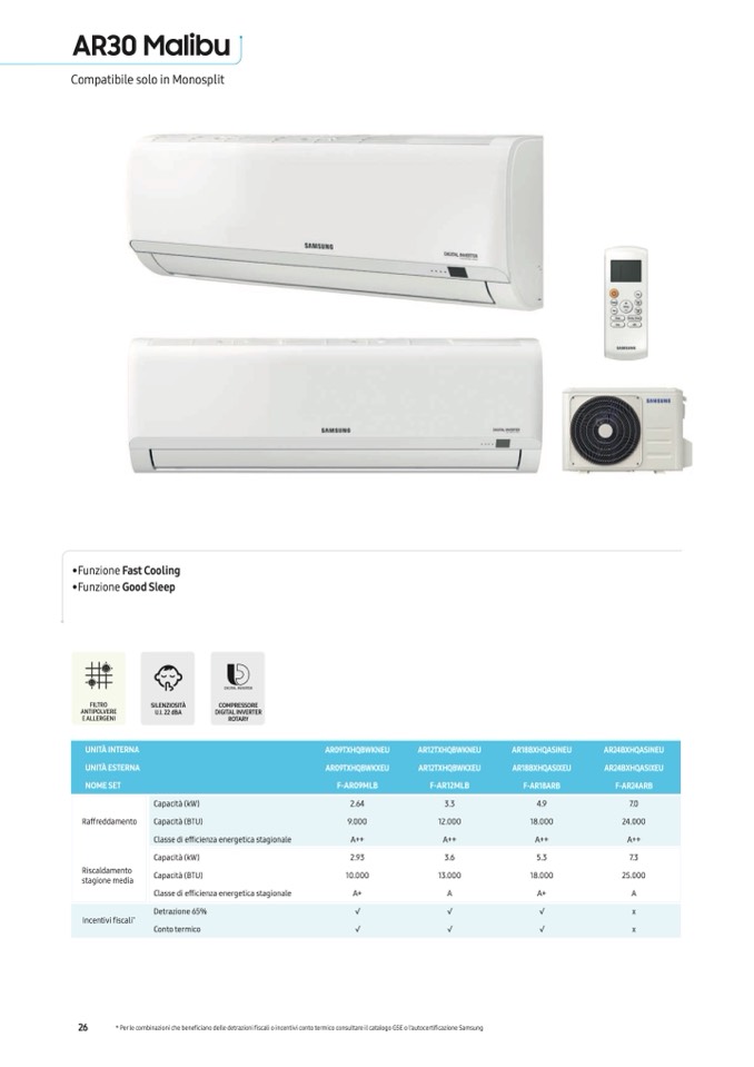 * Per le combinazioni che beneficiano delle detrazioni fiscali o incentivi conto termico consultare il catalogo GSE o l'autocertificazione Samsung