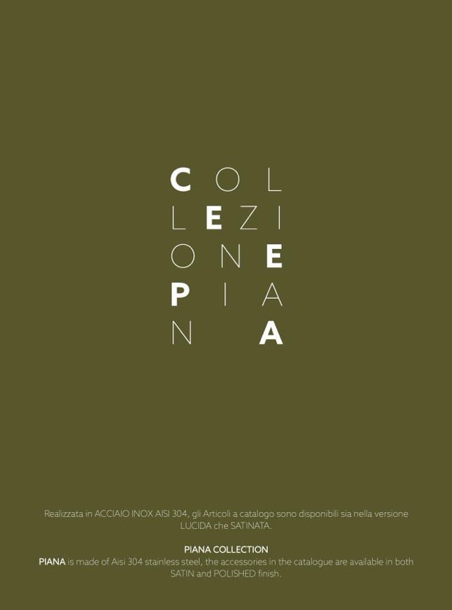 PIANA is made of Aisi 304 stainless steel, the accessories in the catalogue are available in both