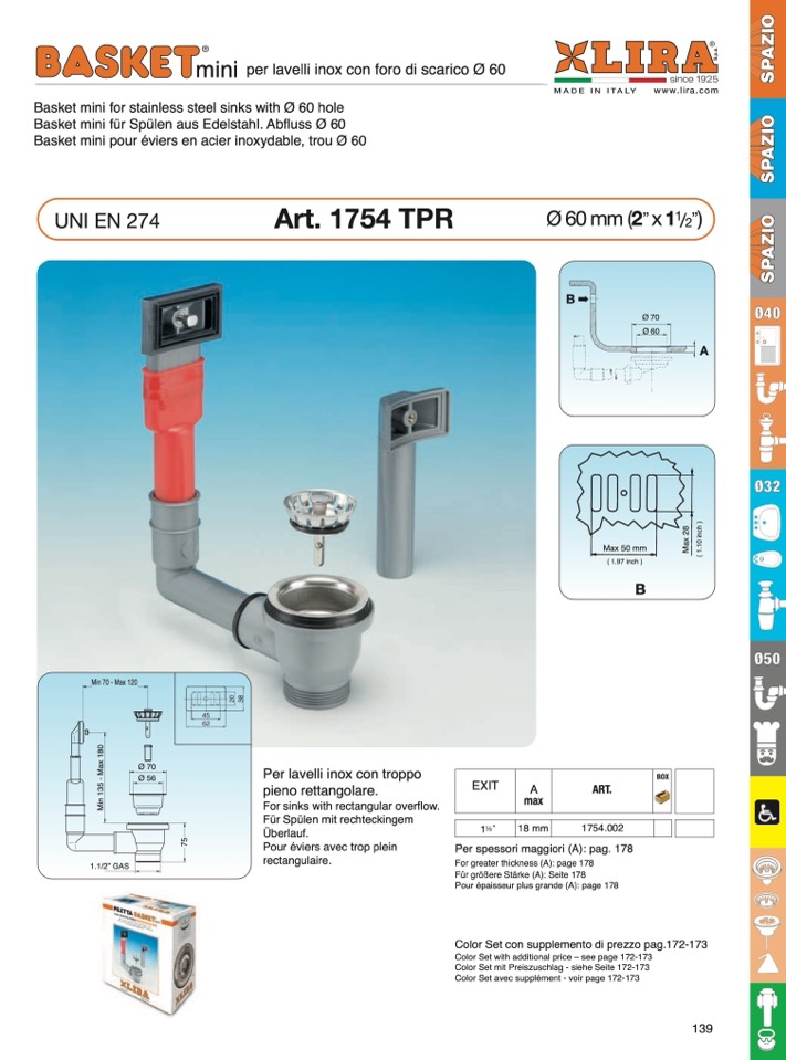 per lavelli inox con foro di scarico Ø 60