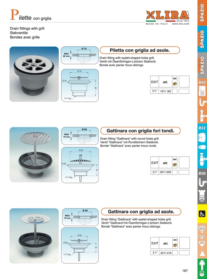 Drain fitting “Gattinara” with eyelet-shaped holes grill.