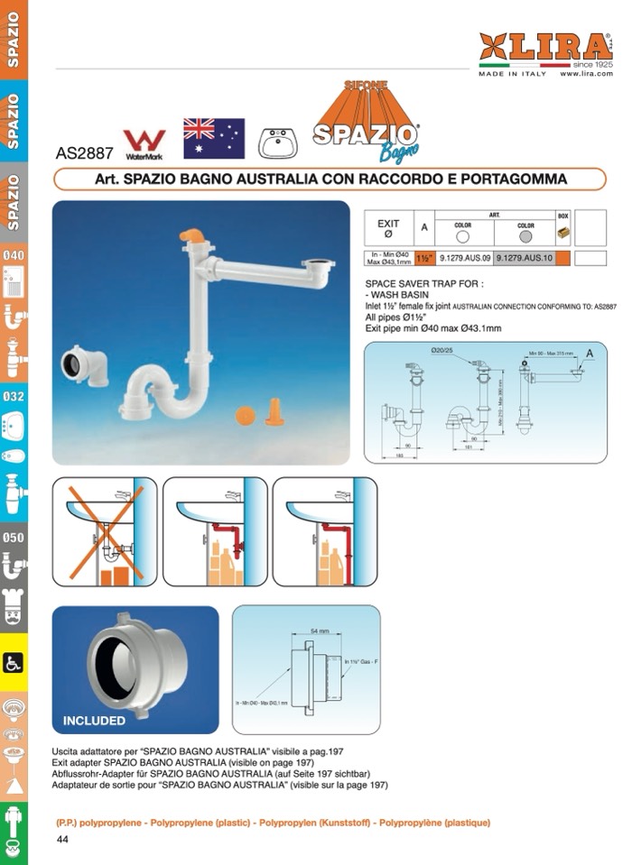Exit adapter SPAZIO BAGNO AUSTRALIA (visible on page 197)