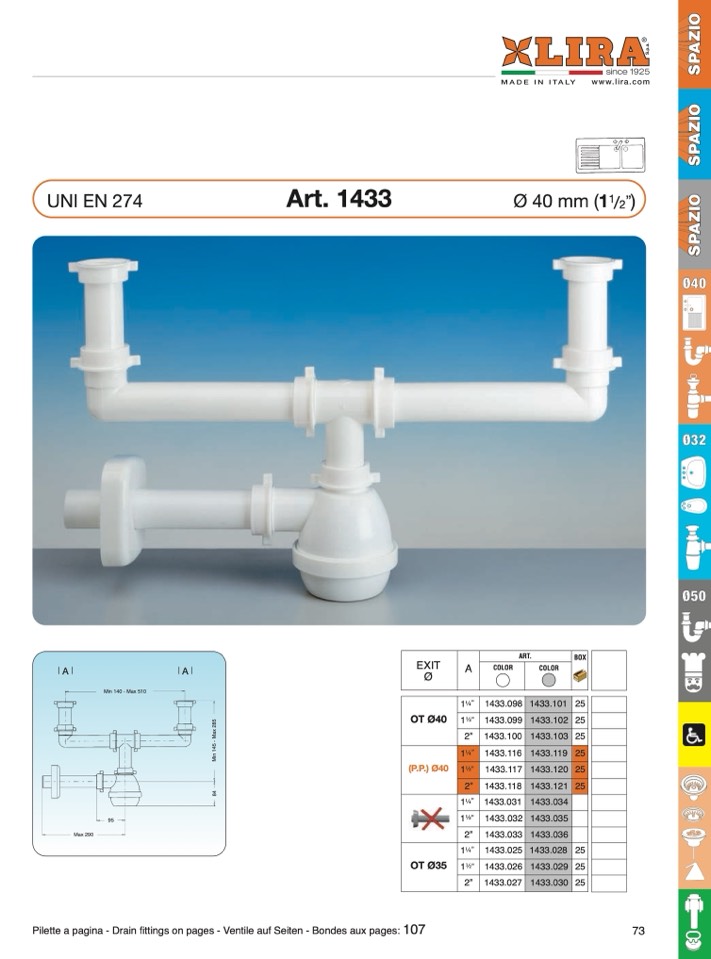 Pilette a pagina - Drain fittings on pages - Ventile auf Seiten - Bondes aux pages: