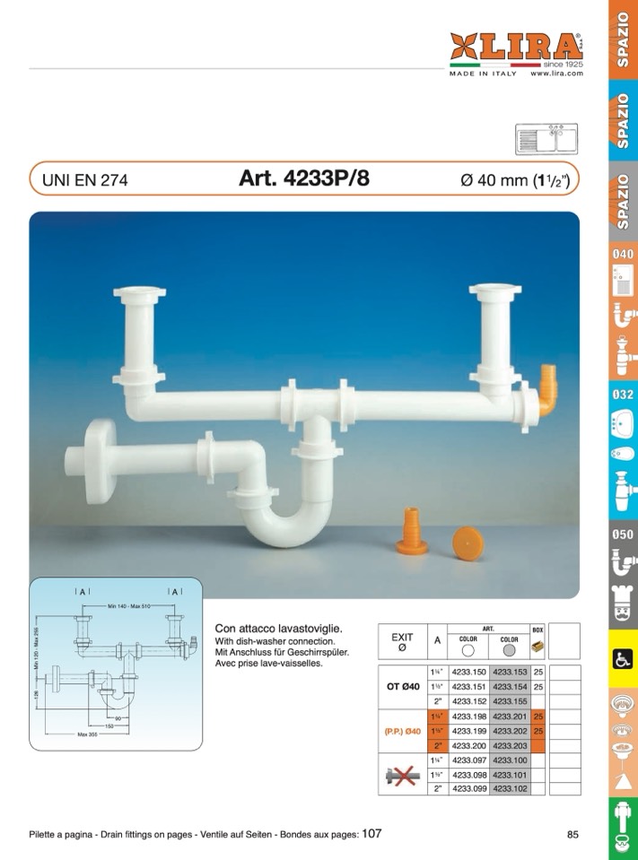 Pilette a pagina - Drain fittings on pages - Ventile auf Seiten - Bondes aux pages: