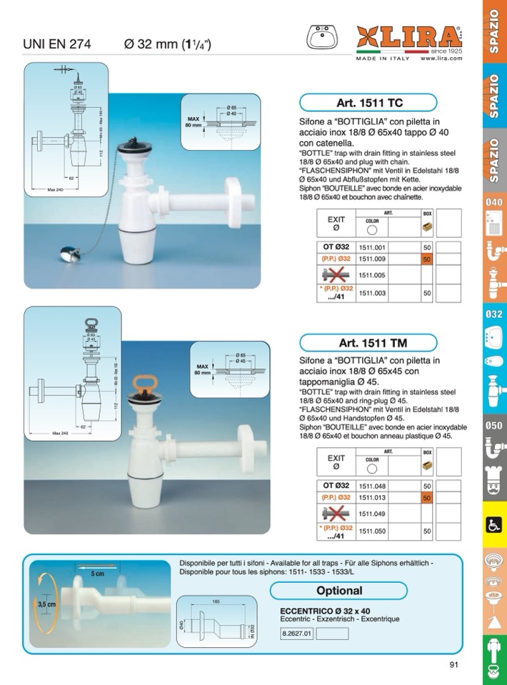 Disponibile per tutti i sifoni - Available for all traps - Für alle Siphons erhältlich -