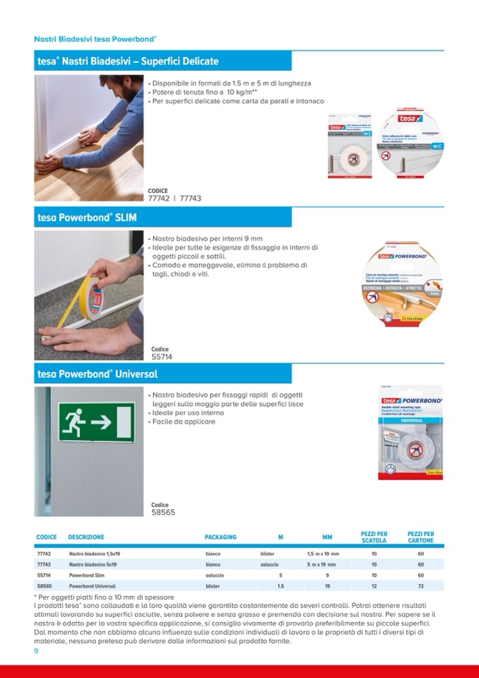 ottimali lavorando su superfici asciutte, senza polvere e senza grasso e premendo con decisione sul nastro. Per sapere se il