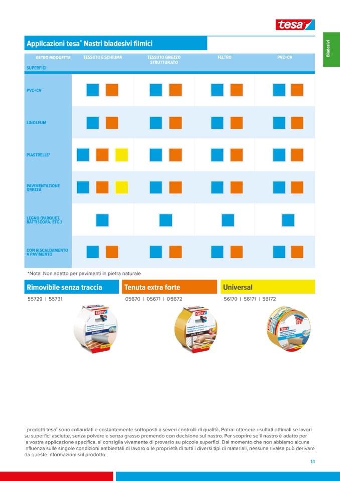 su superfici asciutte, senza polvere e senza grasso premendo con decisione sul nastro. Per scoprire se il nastro è adatto per