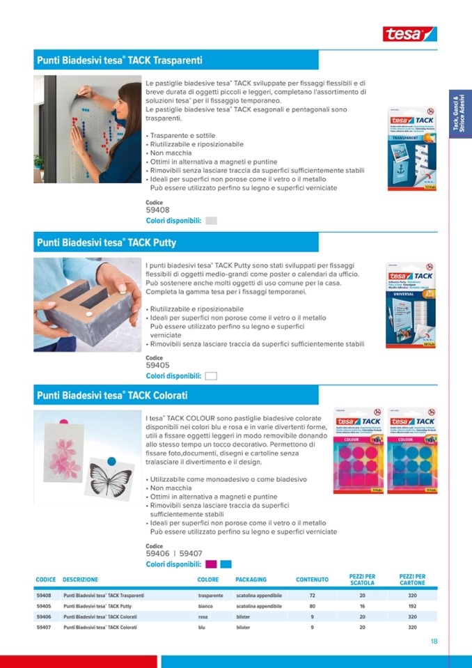 TACK COLOUR sono pastiglie biadesive colorate