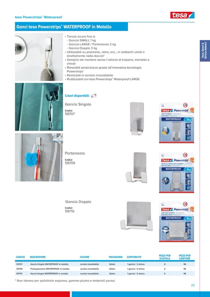 • Riutilizzabili con tesa Powerstrips