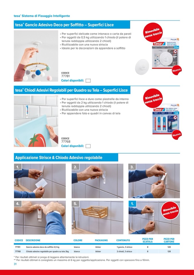 ** Per risultati ottimali è consigliato un massimo di 6 kg per oggetto/applicazione. Per oggetti con spessore fino a 10mm.