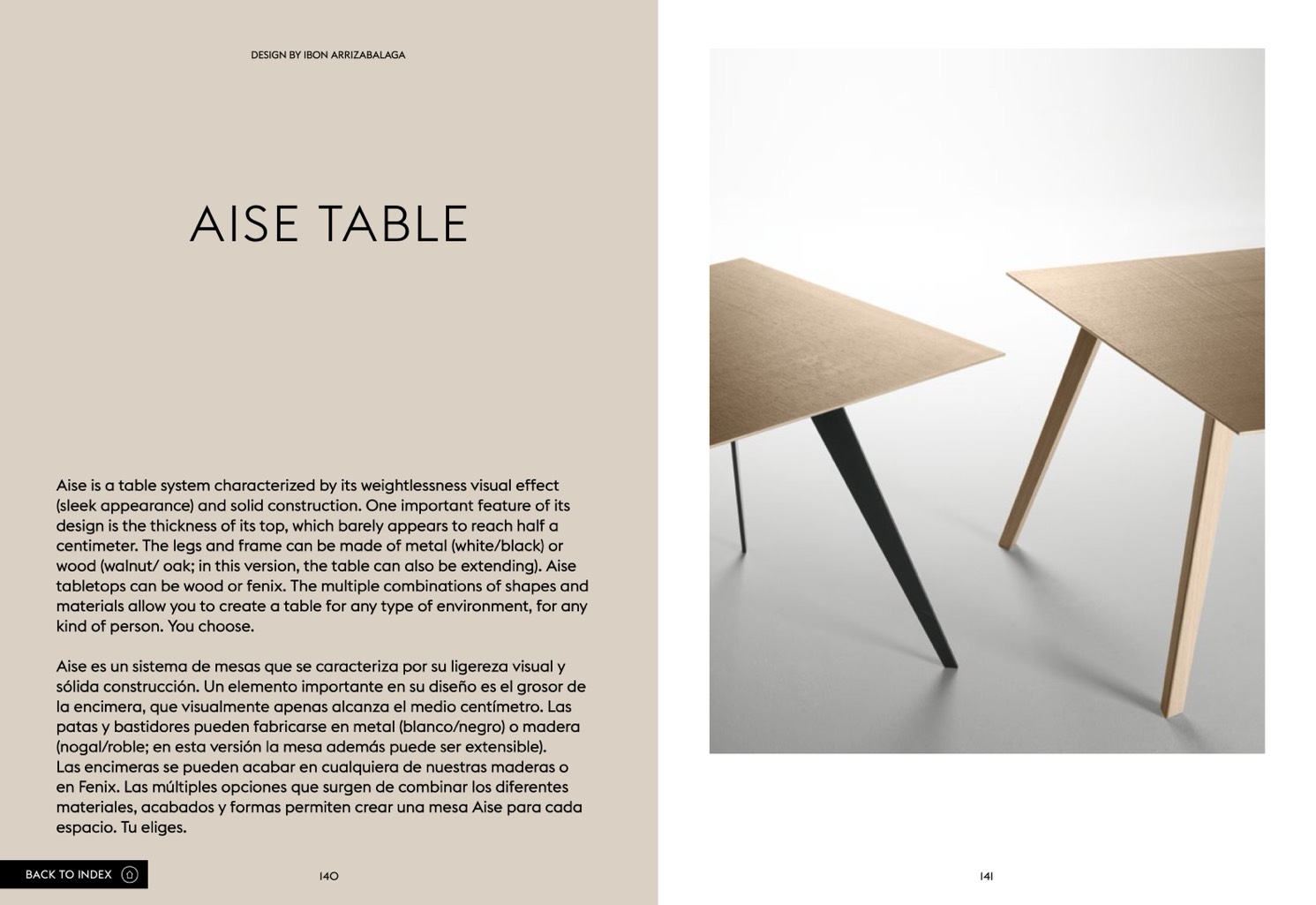 wood (walnut/ oak; in this version, the table can also be extending). Aise