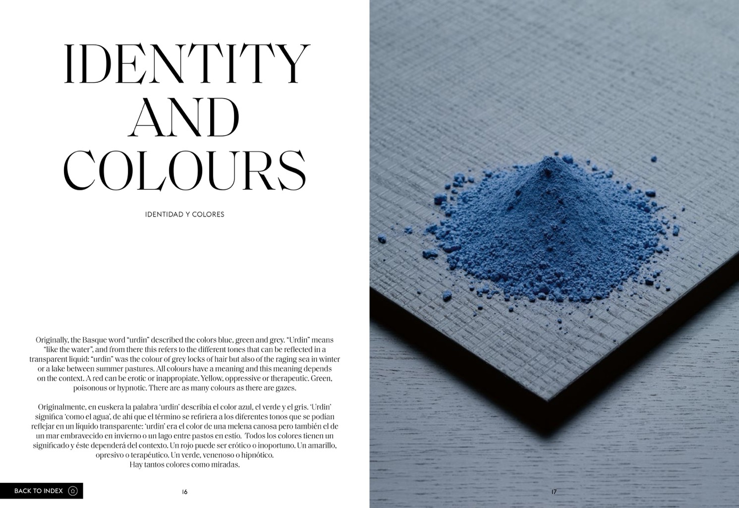 Originally, the Basque word “urdin” described the colors blue, green and grey. “Urdin” means