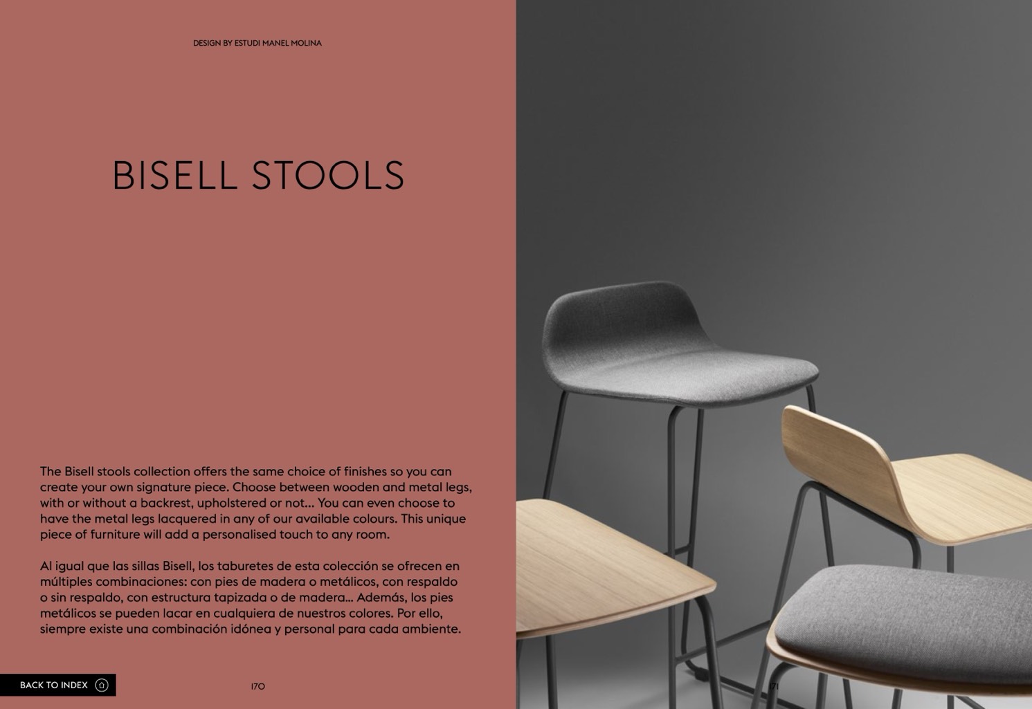 The Bisell stools collection offers the same choice of finishes so you can
