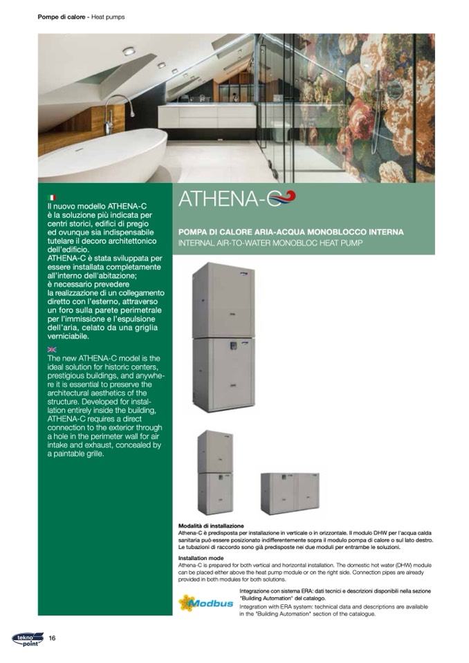 Athena-C is prepared for both vertical and horizontal installation. The domestic hot water (DHW) module