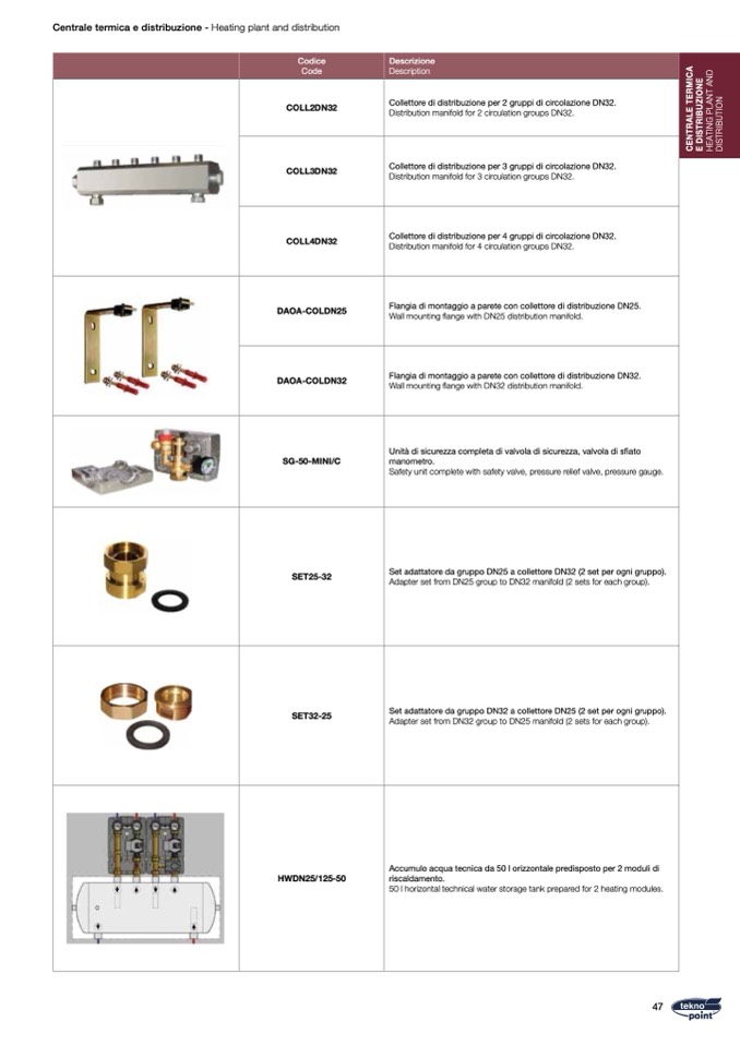 Set adattatore da gruppo DN25 a collettore DN32 (2 set per ogni gruppo).