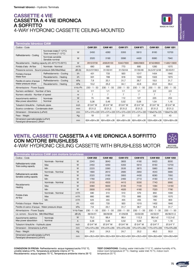 TEST CONDITIONS: Cooling: water inlet/outlet 7/12 °C, relative humidity 47%,