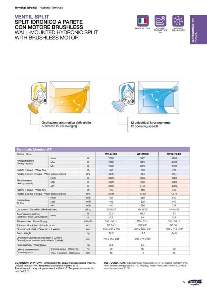 TEST CONDITIONS: Cooling: water inlet/outlet 7/12 °C, relative humidity 47%,
