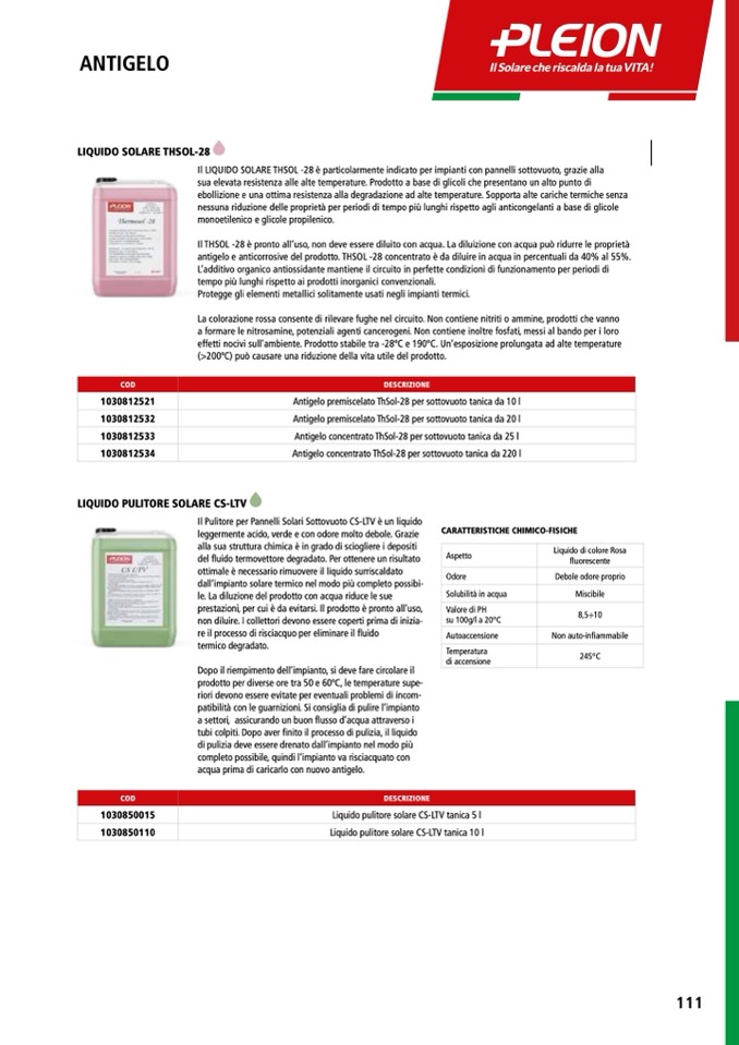 Il LIQUIDO SOLARE THSOL -28 è particolarmente indicato per impianti con pannelli sottovuoto, grazie alla