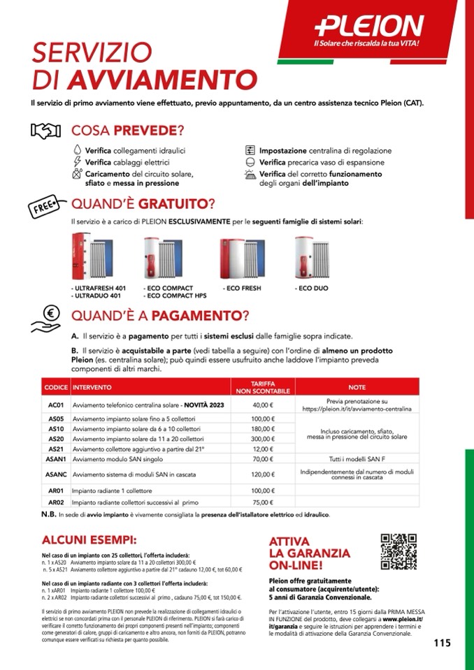 Il servizio è a carico di PLEION ESCLUSIVAMENTE per le seguenti famiglie di sistemi solari: