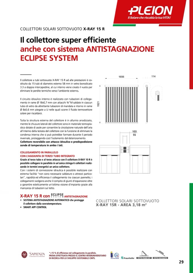 Il collettore a tubi sottovuoto X-RAY 15 R ad alte prestazioni è co-