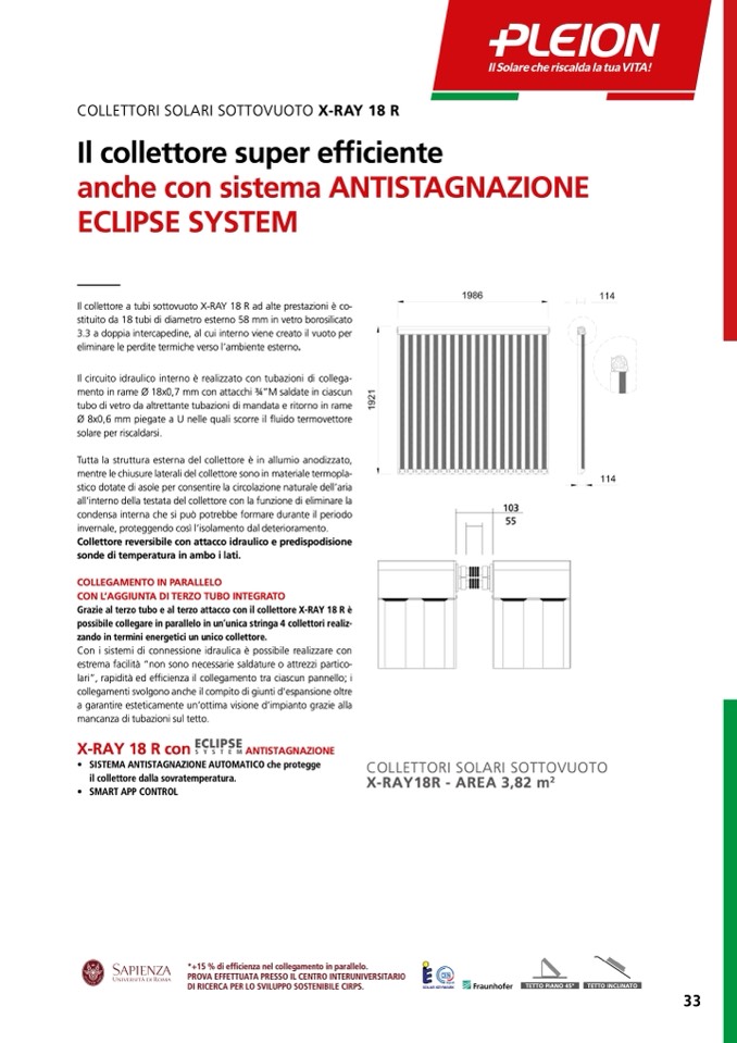 Il collettore a tubi sottovuoto X-RAY 18 R ad alte prestazioni è co-