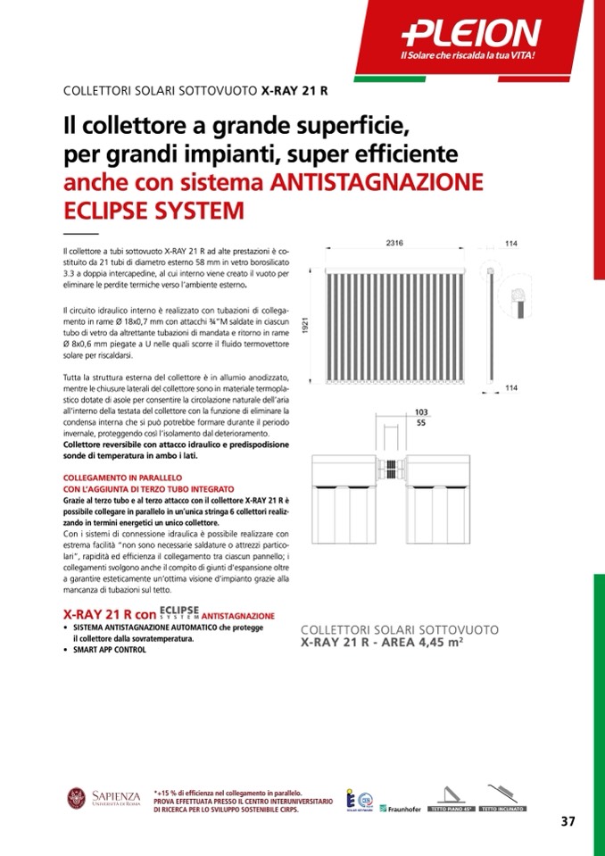Il collettore a tubi sottovuoto X-RAY 21 R ad alte prestazioni è co-