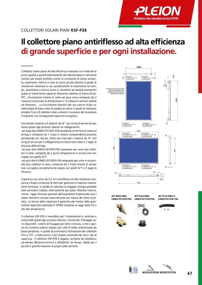 copertura. Il collettore KSF-P26 è leggero, semplice da installare,e